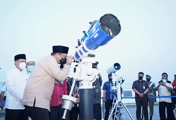 Wali Kota Medan, Muhammad Bobby Afif Nasution,SE.,MM memantau secara langsung rukyatul hilal penentuan awal Ramadhan 1442H/ 2021 M dari ruang Observatorium Ilmu Falak (OIF) Gedung Pascasarjana Universitas Muhammadiyah Sumatera Utara (UMSU) di Jalan Denai, Medan Denai, Senin (12/04).