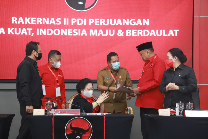 Turut hadir mendampingi Ketua Umum PDIP, antara lain Bendahara Umum PDIP Olly Dondokambey, Ketua DPR RI Puan Maharani, Prananda Prabowo, Sekretaris Jenderal (Sekjen) PDIP Hasto Kristiyanto, dan pengurus DPP PDIP lainnya.